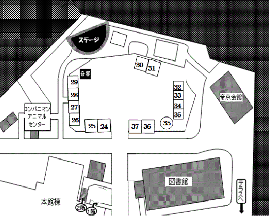 1. 動物園研究部 13.地域連携推進センター 2.男女バレーボール部 学生プロジェクトチーム「積希」 3.動物園飼育研究部 14.バトミントン部 4.硬式テニスサークル 15.じゃねんず 飛龍 TeamTamTam 16.モン・ブロート 5.ソフトテニスサークル 17.AQUASHIP 6.弓道部 18.環境問題研究部 7.SWEET HEART 19.動物介在教育研究部 ~動物の命の大切さを考える部~ 20.テコンドー部 8.バスケットボールサークル FEETS 21.ボクシング部 9.ストリートダンス部 UNION 22.ミステリー研究会 10.暇な4年生 23.自衛隊山梨地方協力本部 11.陸上競技部 学.学際ブース 12.天文部